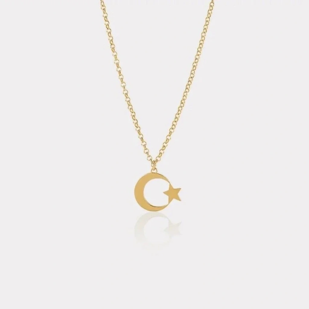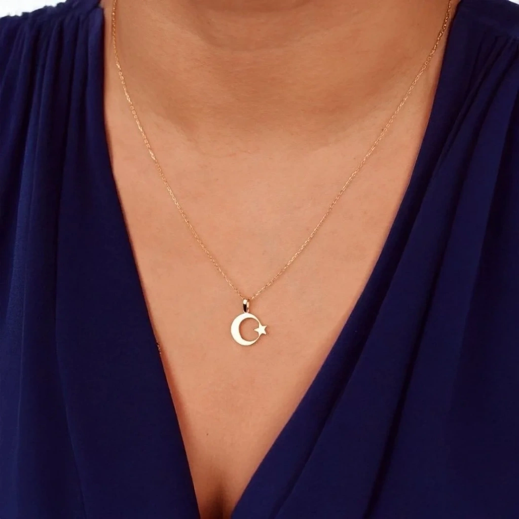 14 Ayar Altın Ay Yıldız Kolye