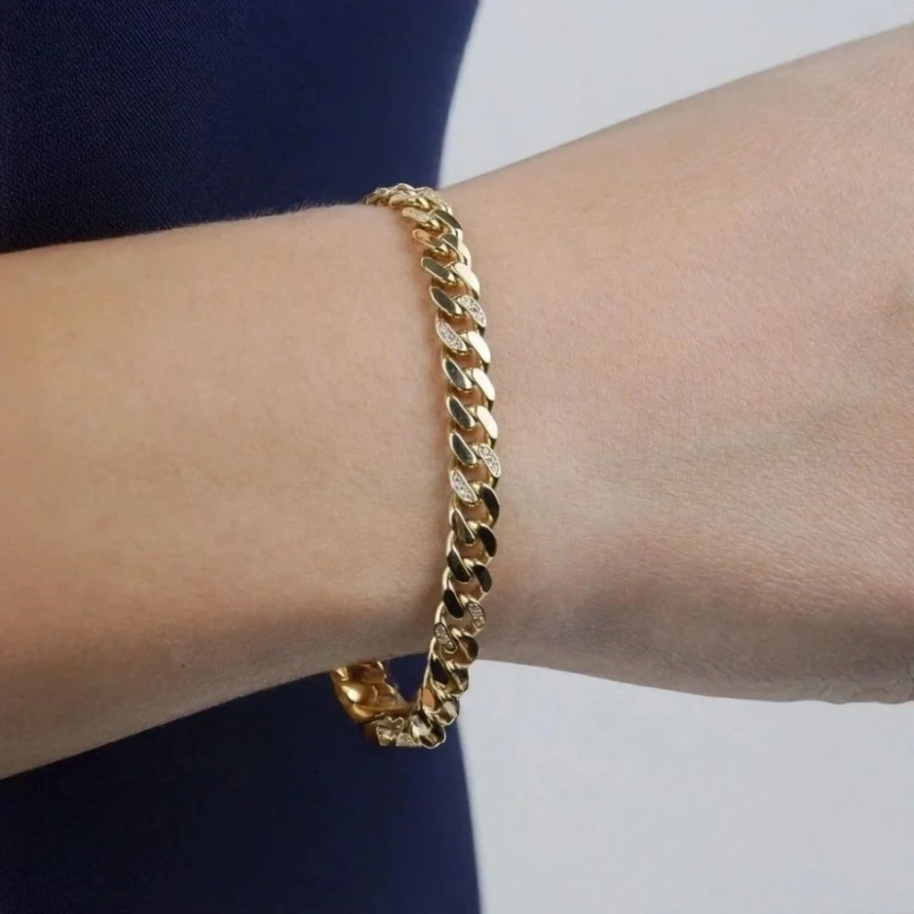 14 Ayar Altın Az Taşlı Monaco Bileklik