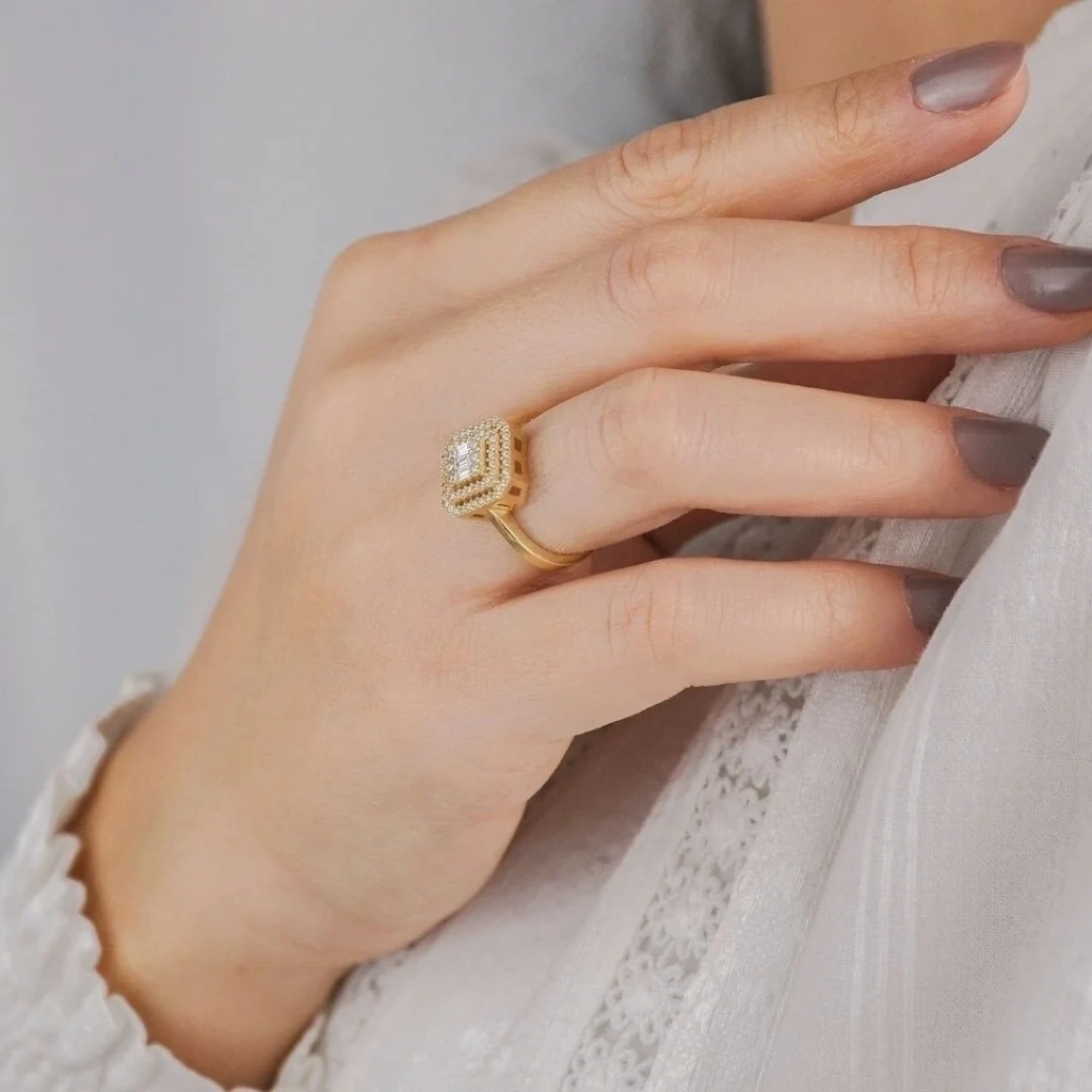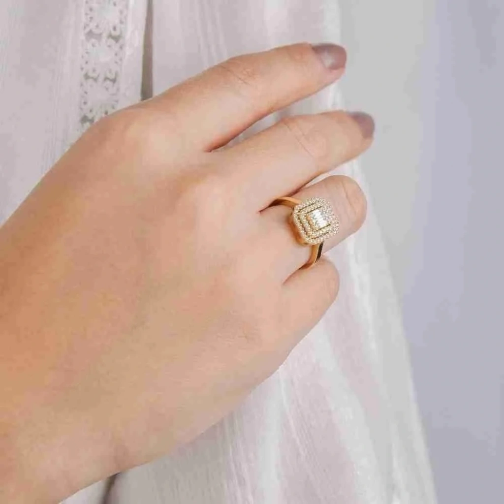 14 Ayar Altın Çift Sıra Baget Yüzük