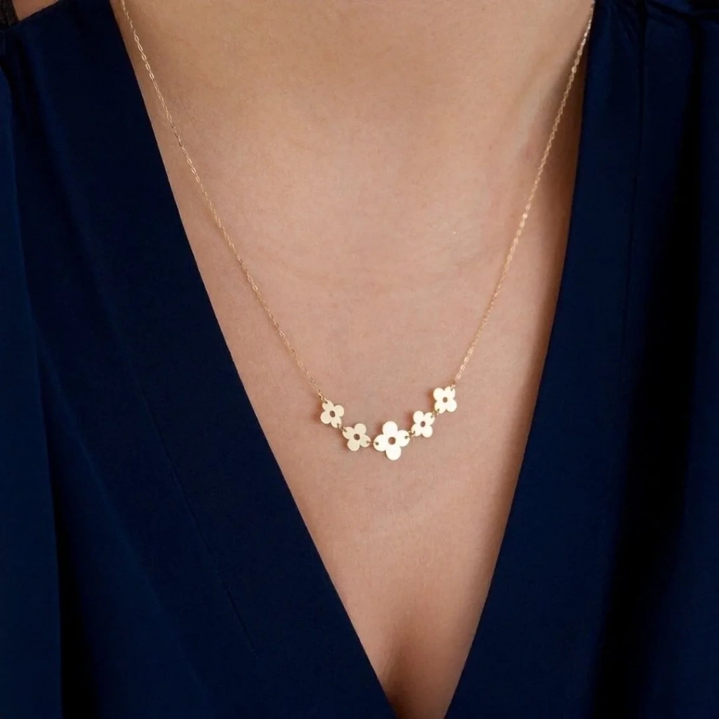 14 Ayar Altın Beş Pullu Yonca Kolye