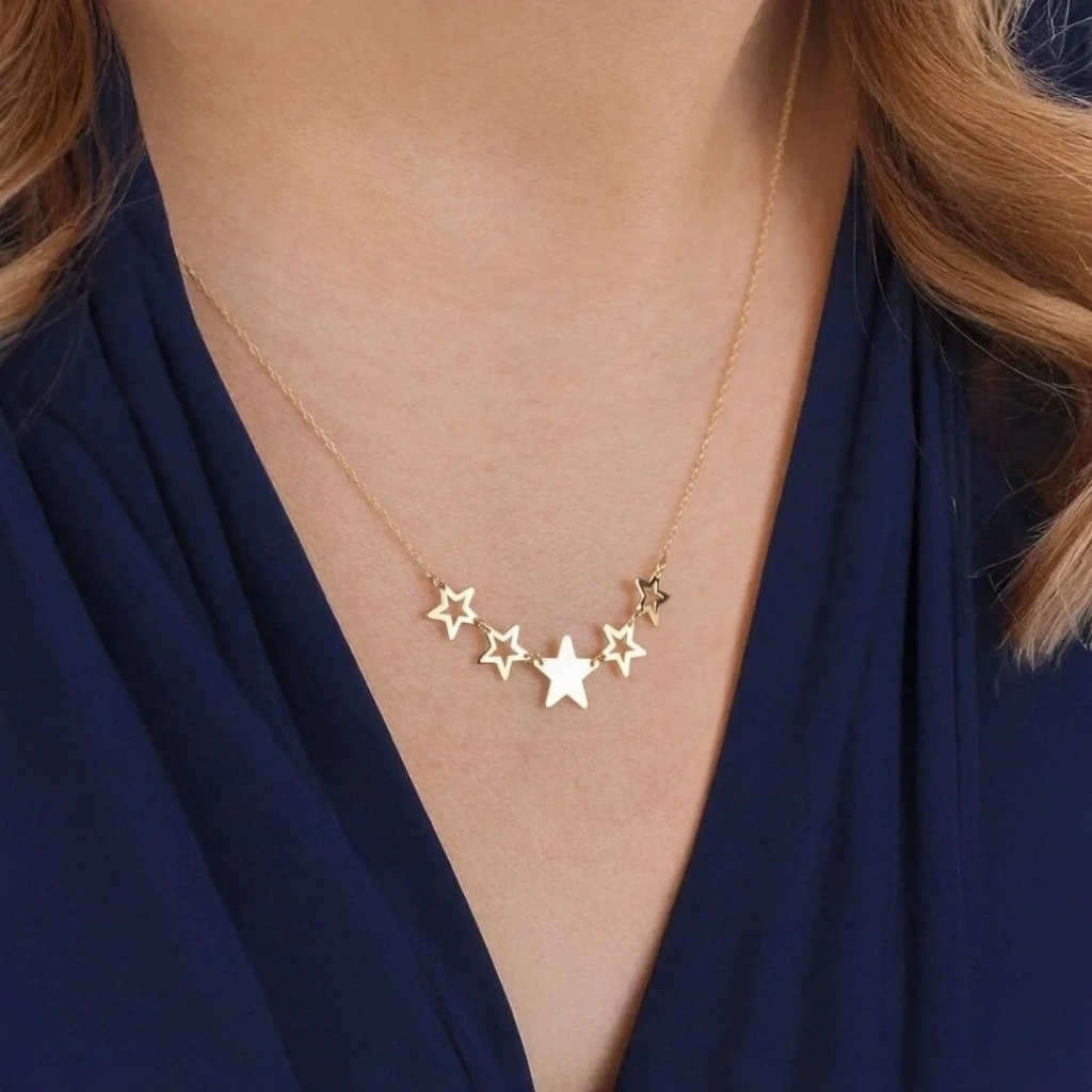 14 Ayar Altın Beşli Yıldız Kolye
