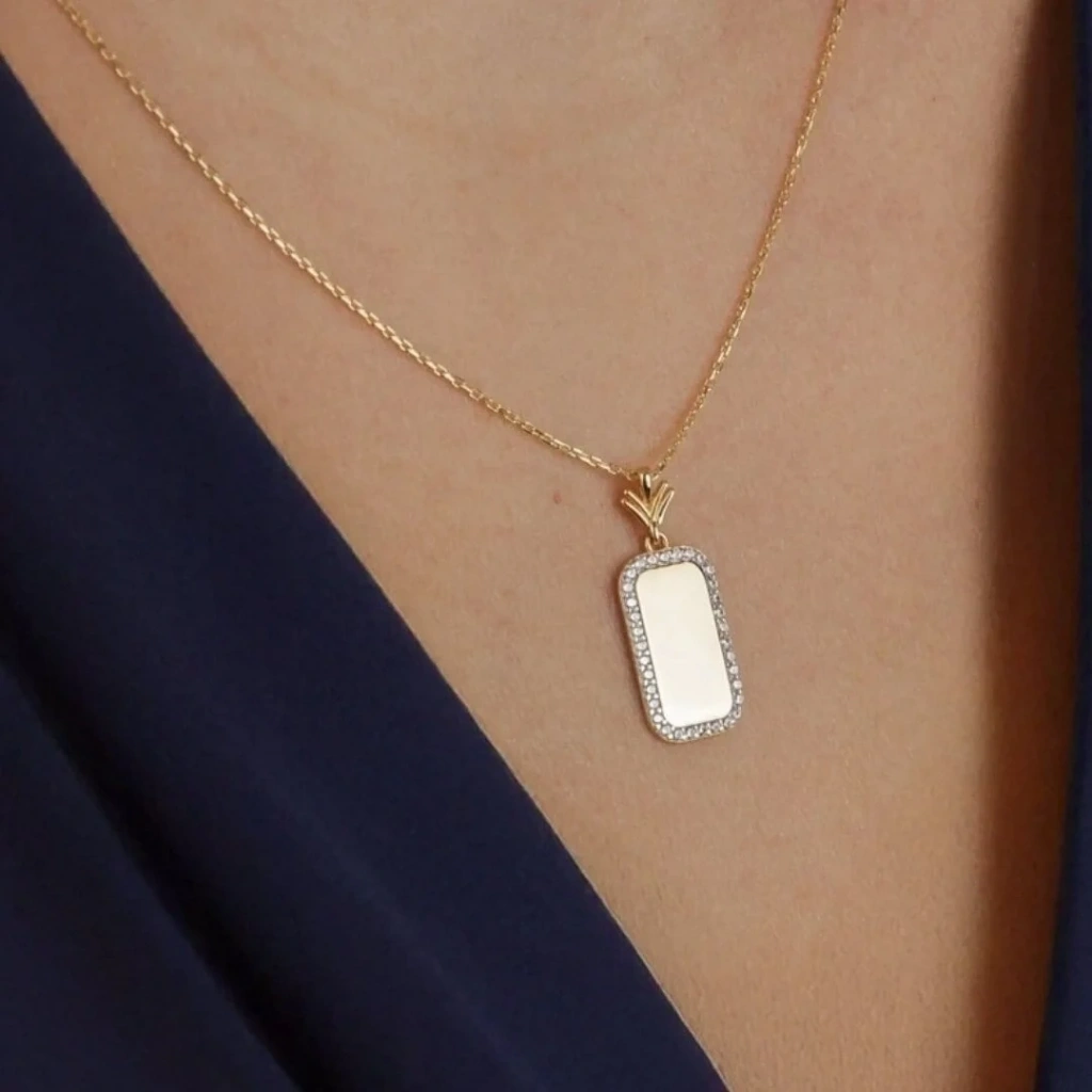 14 Ayar Altın Çerçeve Taşlı Kolye
