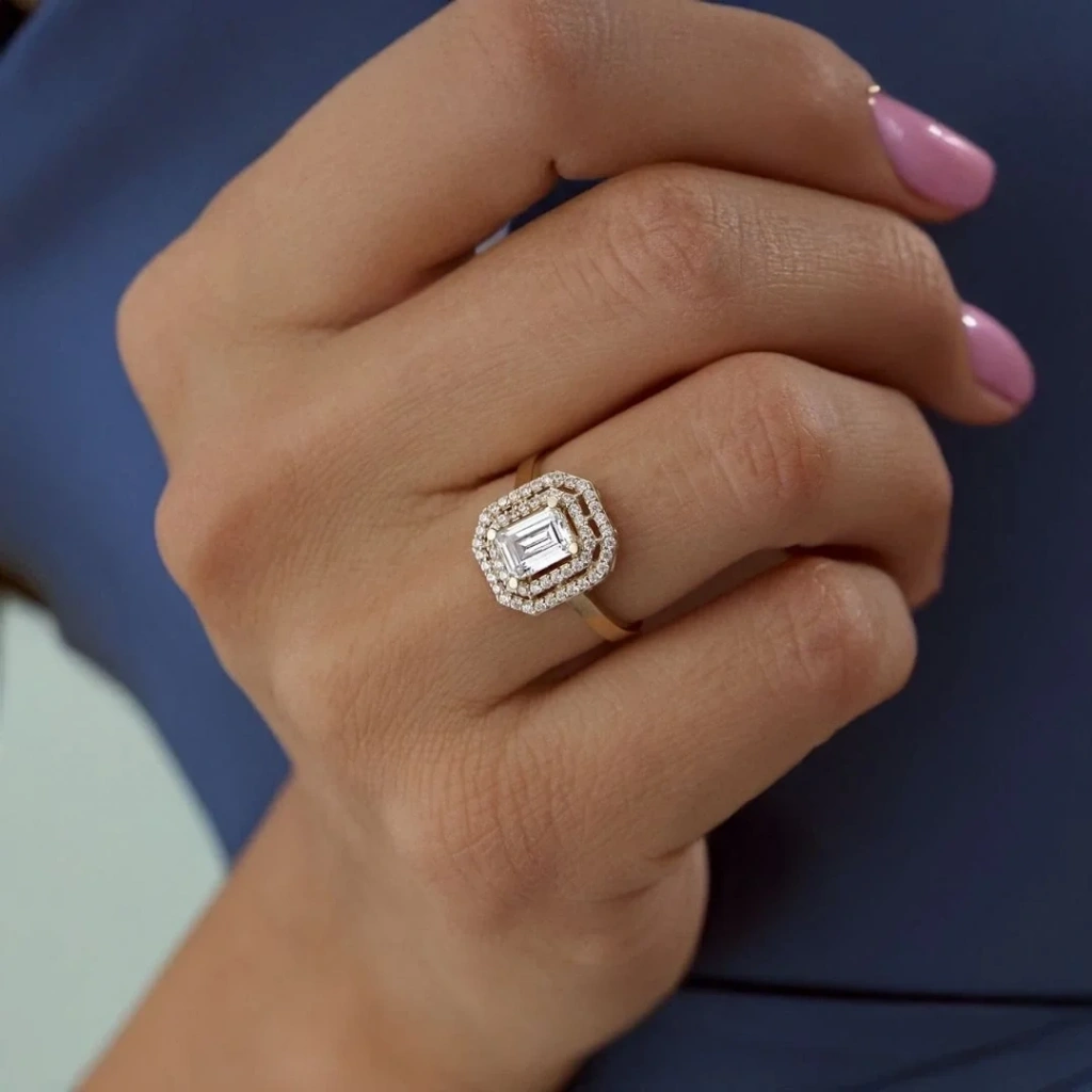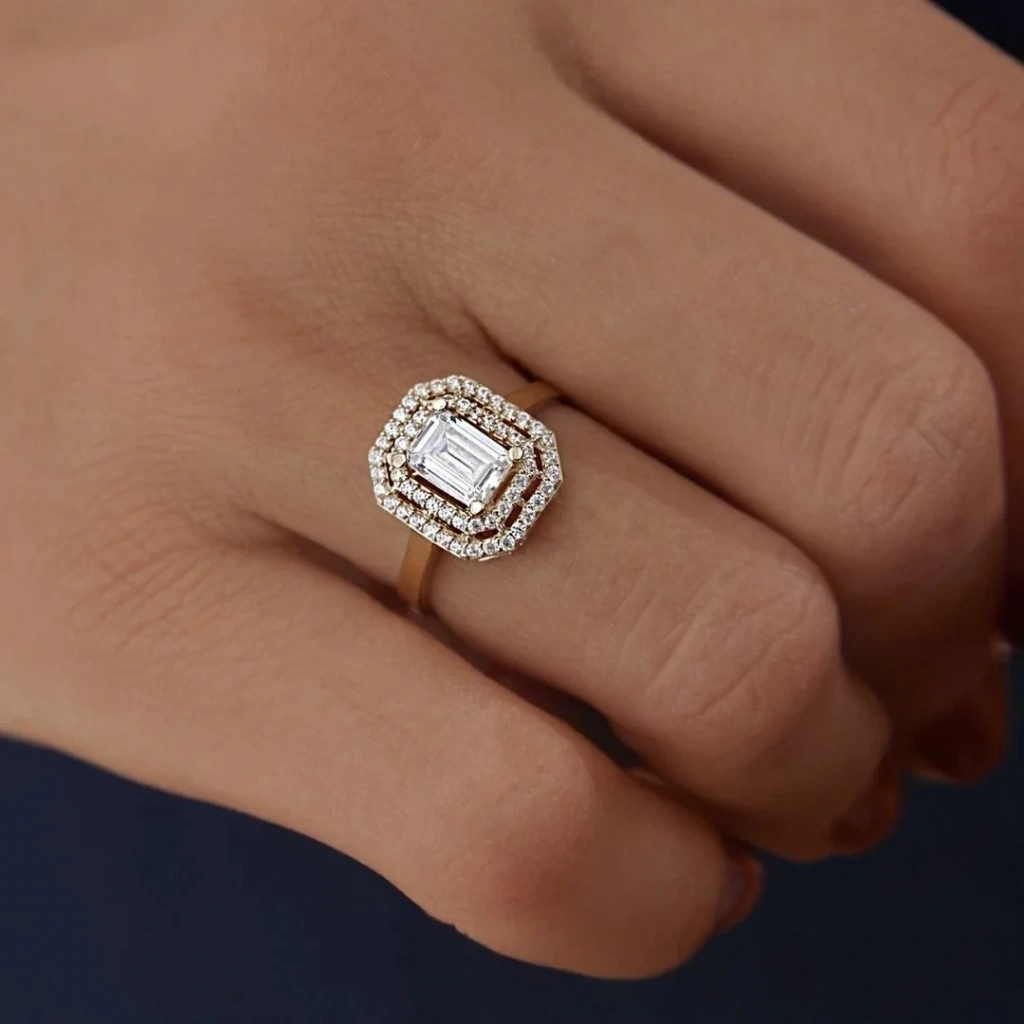 14 Ayar Altın Çift Sıra Baget Yüzük