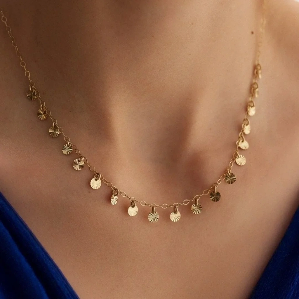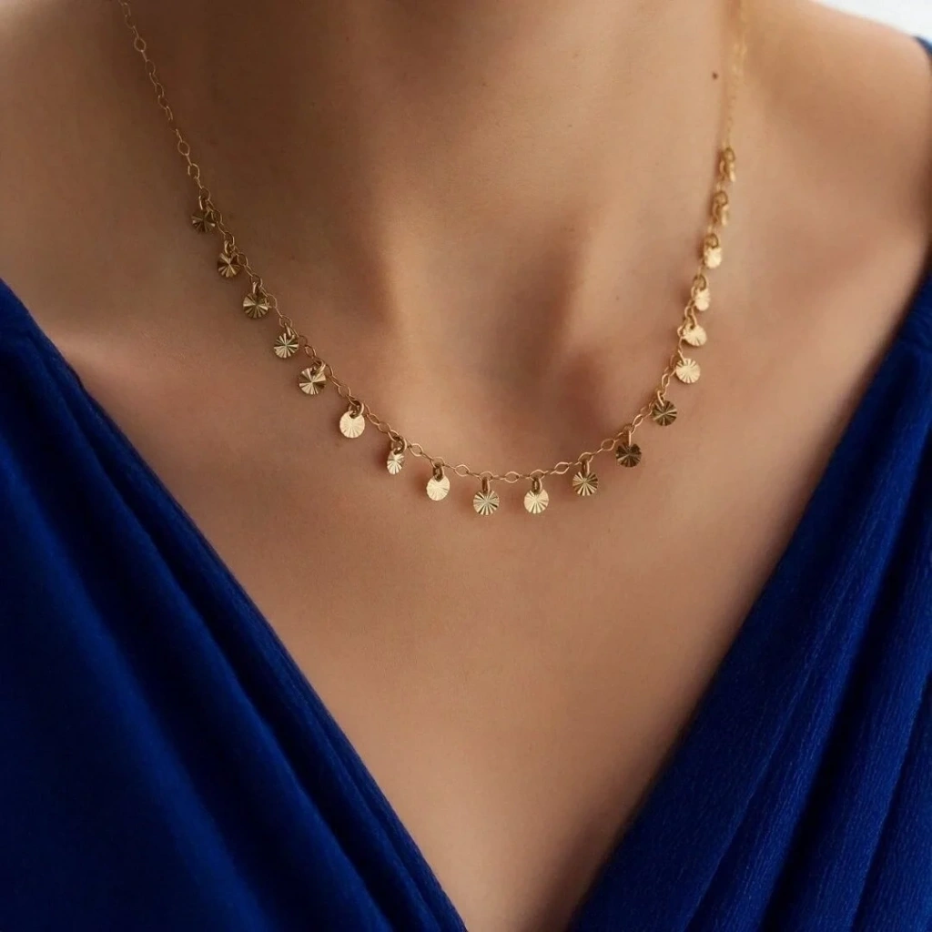 14 Ayar Altın Çok Pullu Kolye