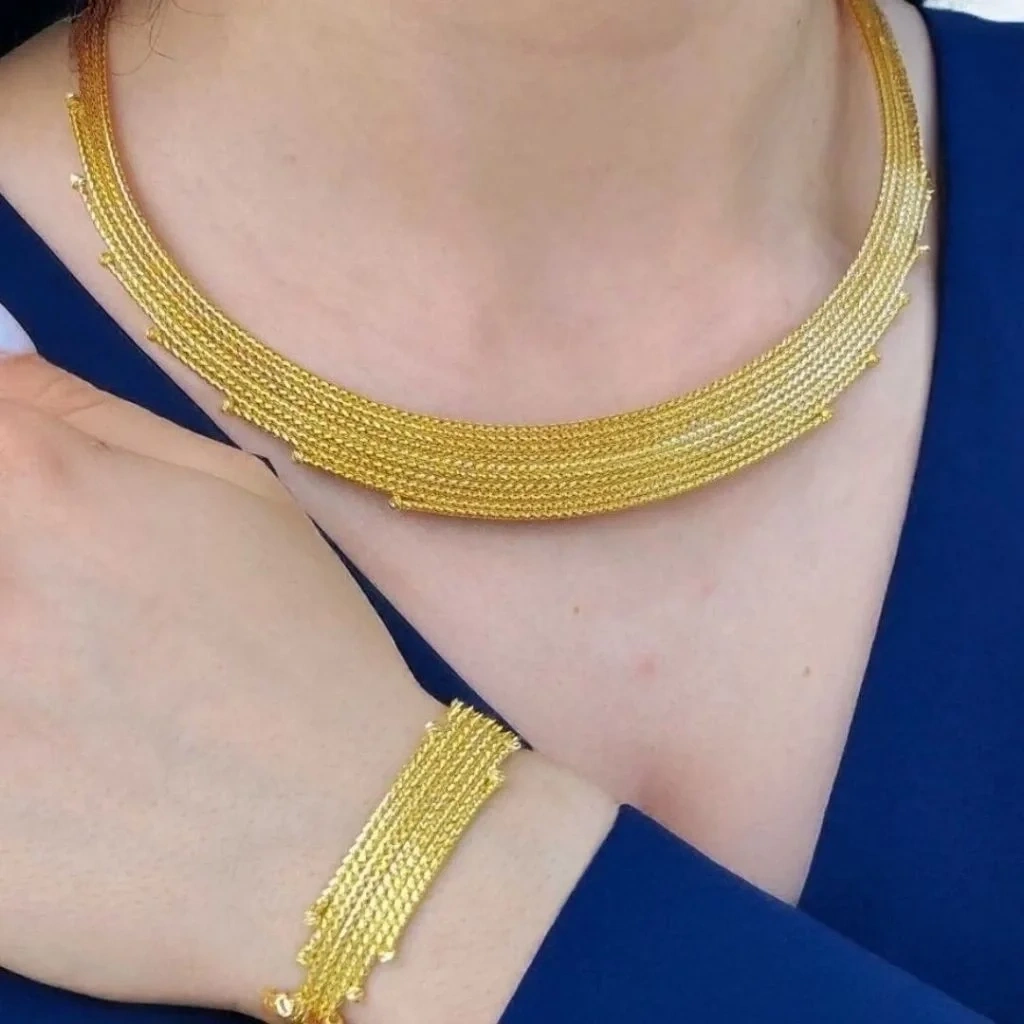 8 Ayar Altın Kalze Örgü Hasır Set Takımı