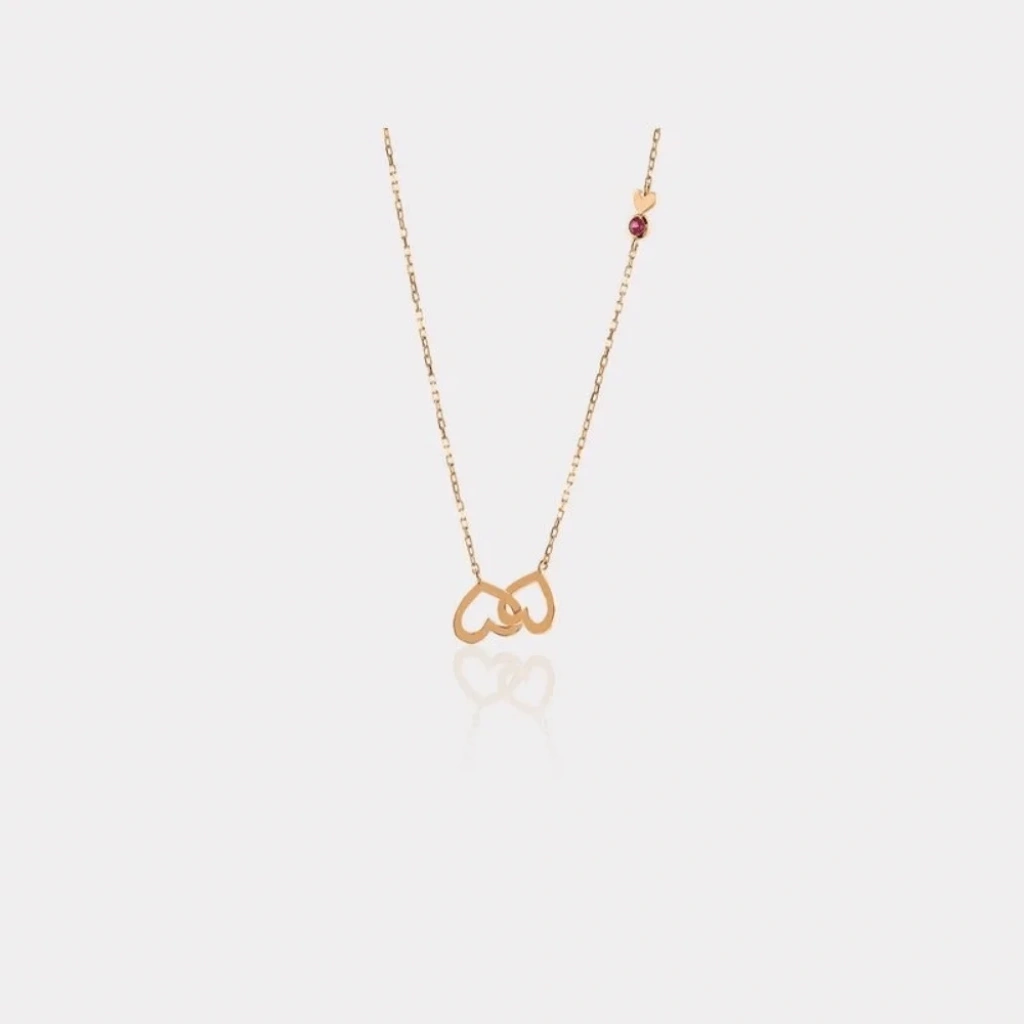 14 Ayar Altın İç İçe Kalp Kolye