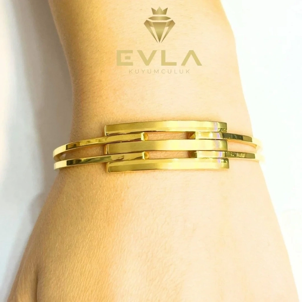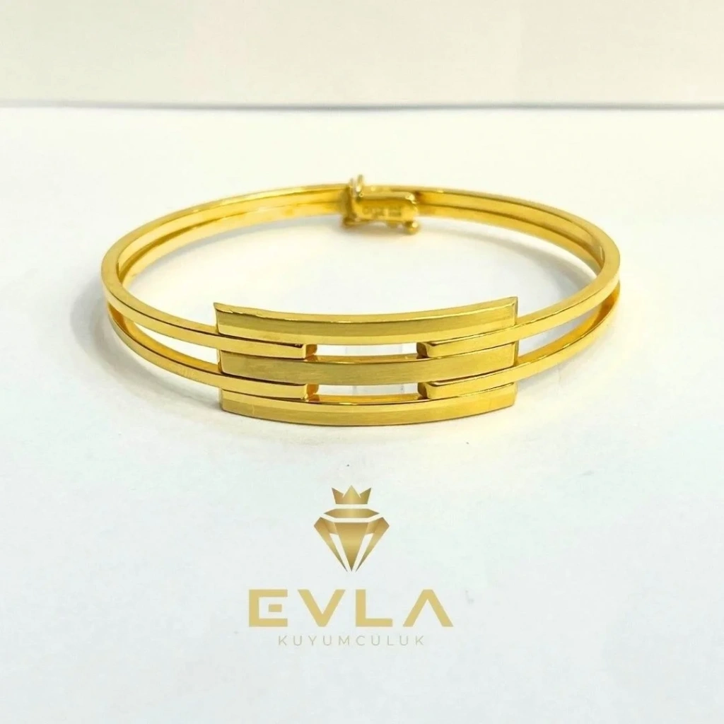 Sarı Altın 3 Sıra Aynalı Kelepçe