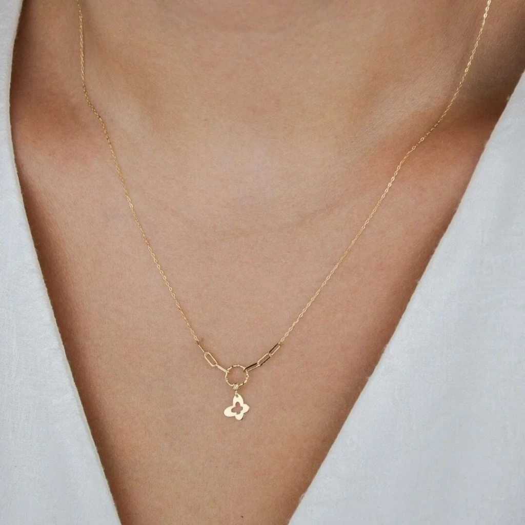14 Ayar Altın Ayna Zincirli Harf Kolye