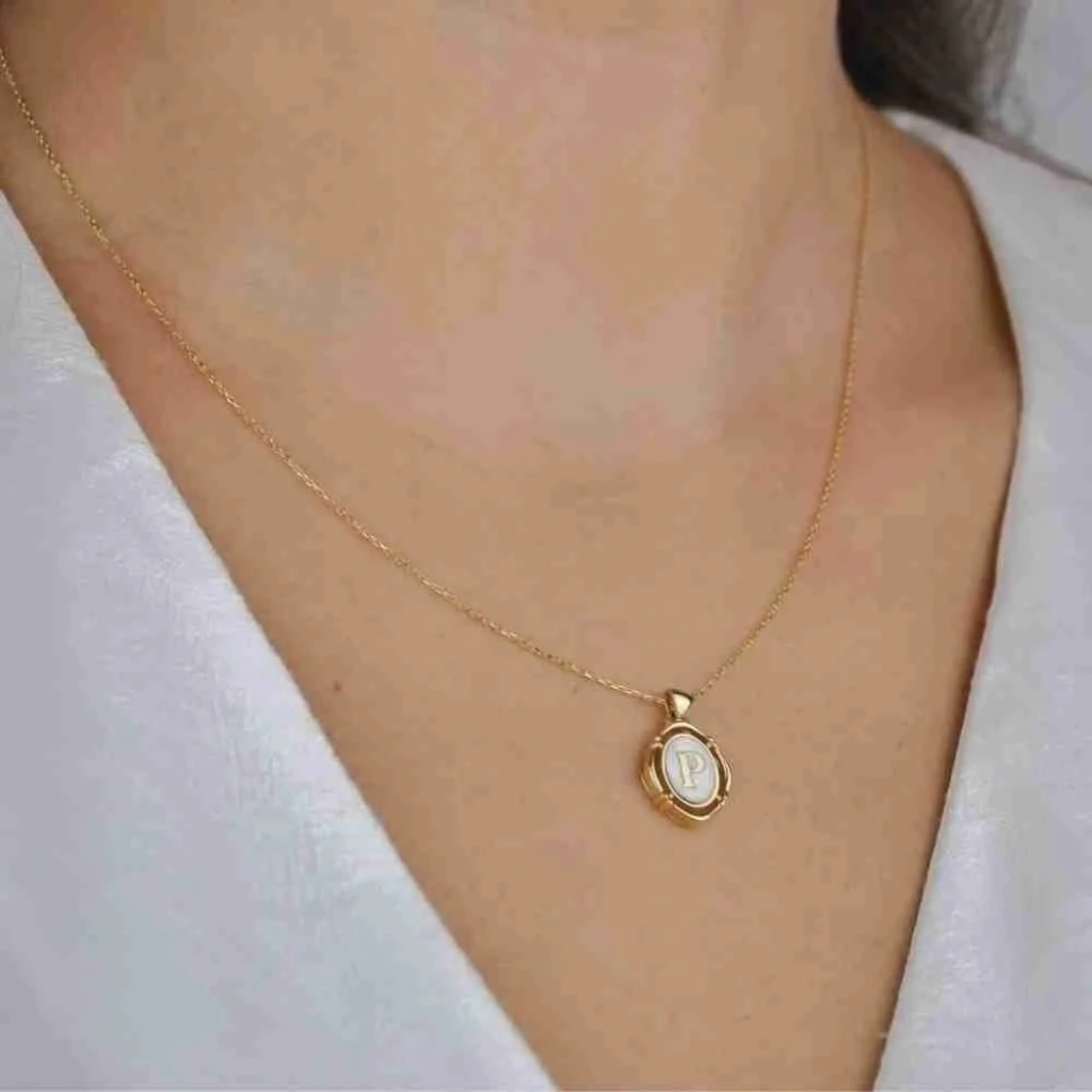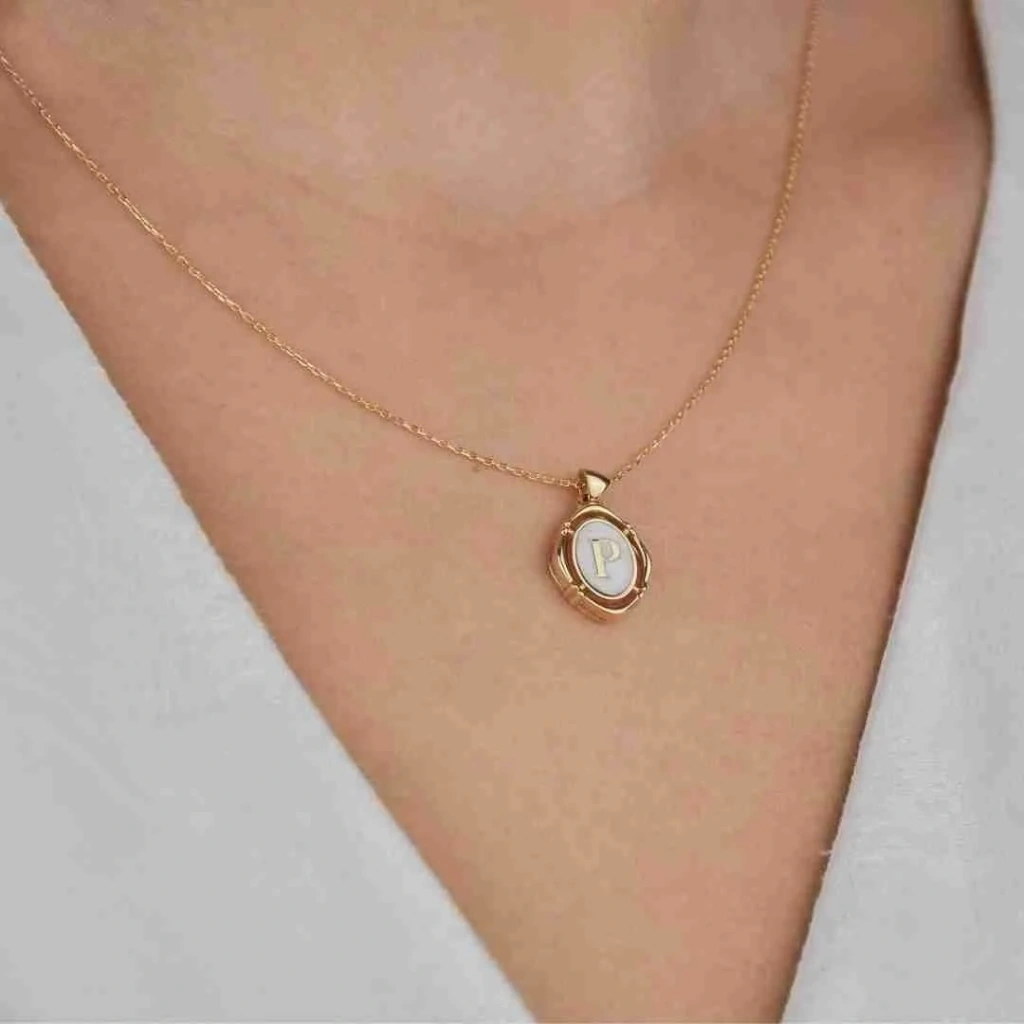 14 Ayar Altın Ayna Zincirli Harf Kolye