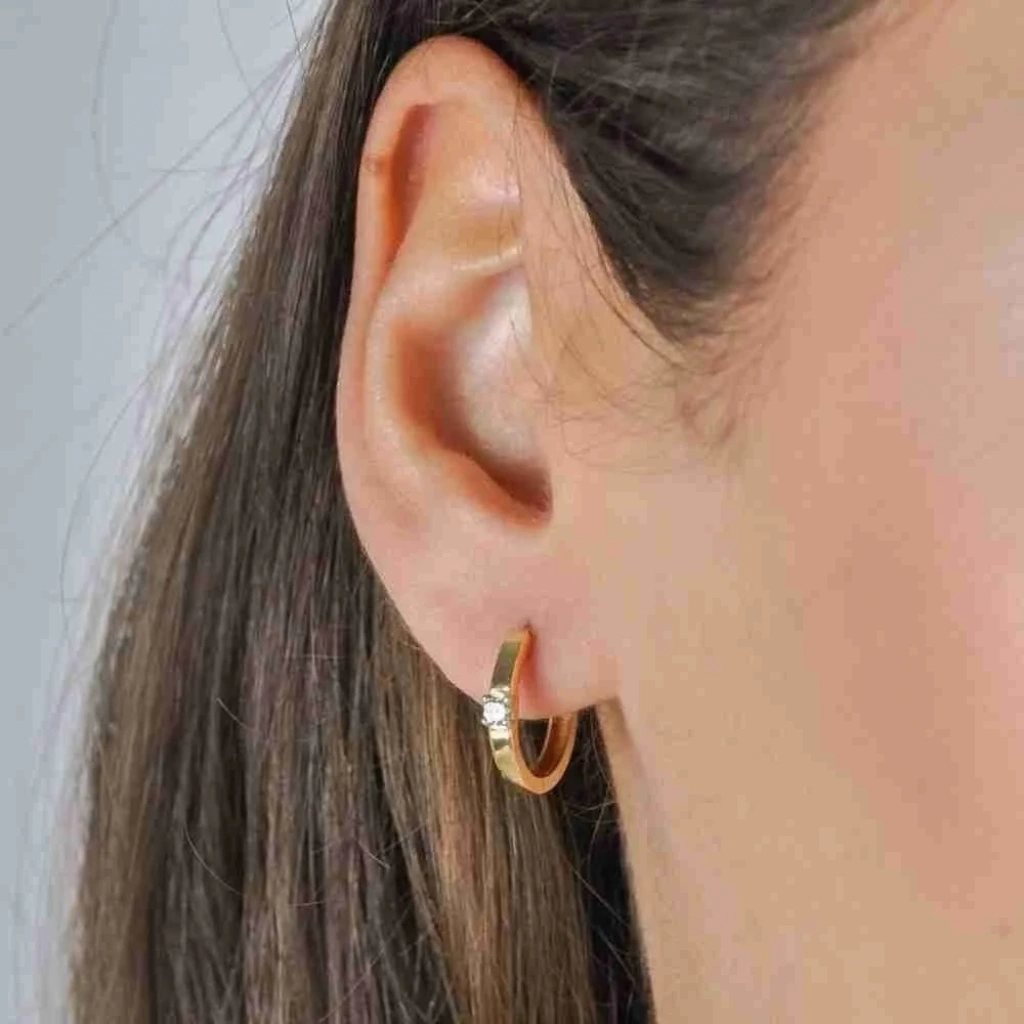 14 Ayar Altın Tektaş Halka Küpe