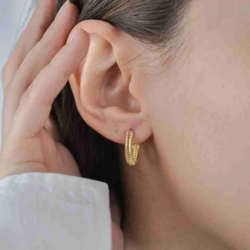 14 Ayar Altın Baget Oval Vidalı Küpe