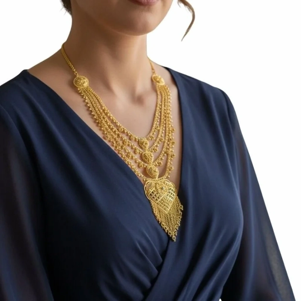 14 Ayar Altın Çerçeve Taşlı Kolye