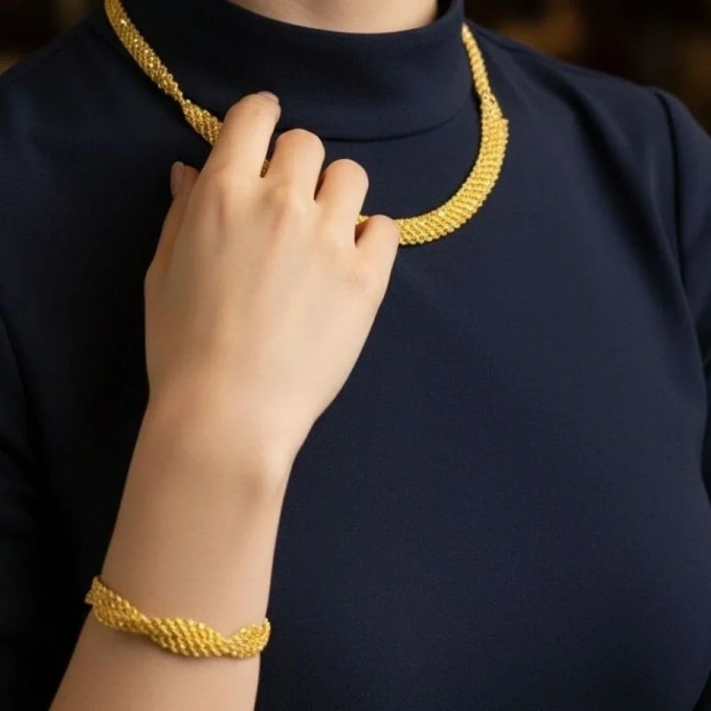 8 Ayar Altın Kalze Örgü Hasır Set Takımı