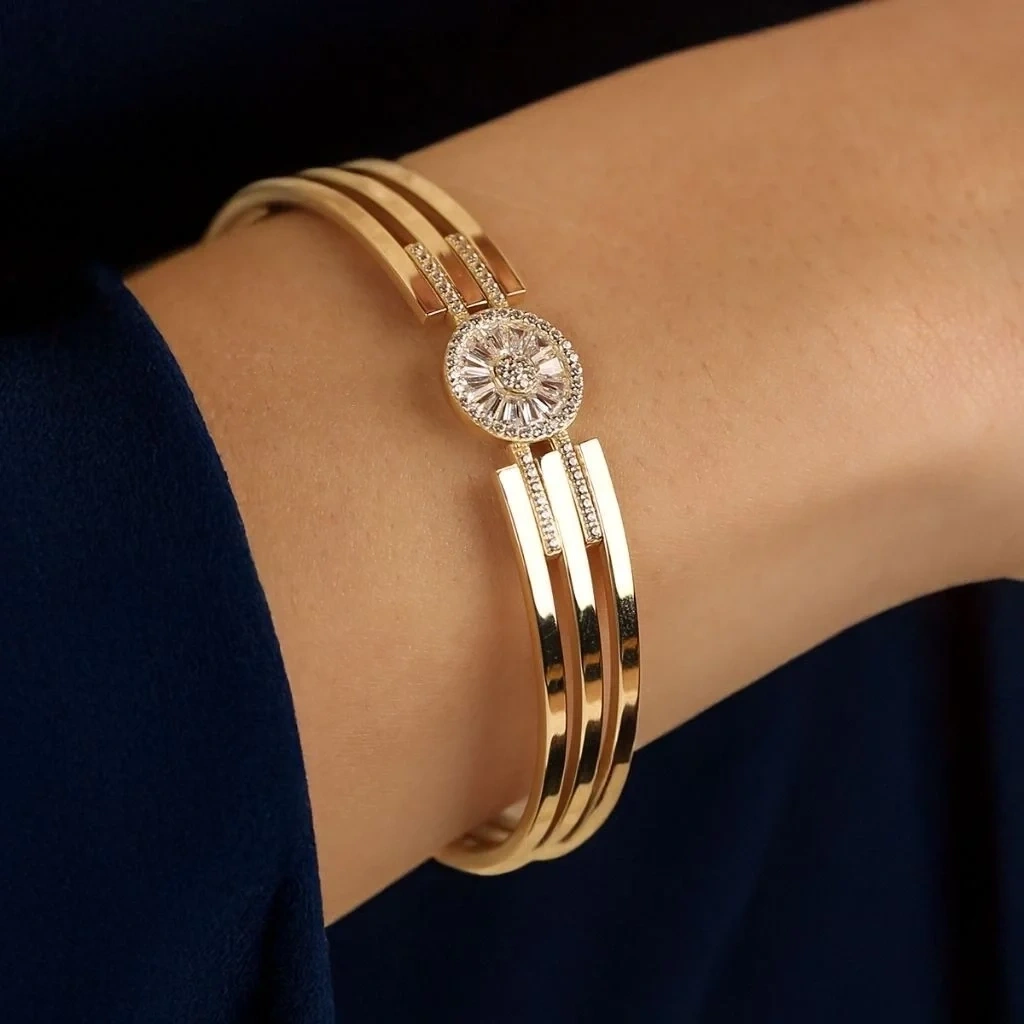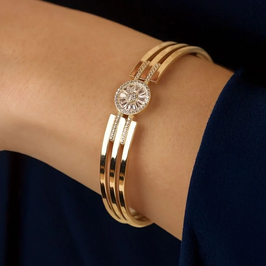 Sarı Altın 3 Sıra Aynalı Kelepçe